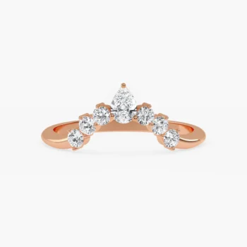 The Astrielle Woven Radiance Diamond Wedding Band features two graceful diamond rows that intertwine in a soft, nature-inspired weave. Crafted in 14K rose gold, this elegant band is adorned with 22 meticulously set lab-grown diamonds totaling 0.22 carats. Its warm glow and refined sparkle make it perfect for pairing with engagement rings or wearing alone as a timeless statement of beauty.