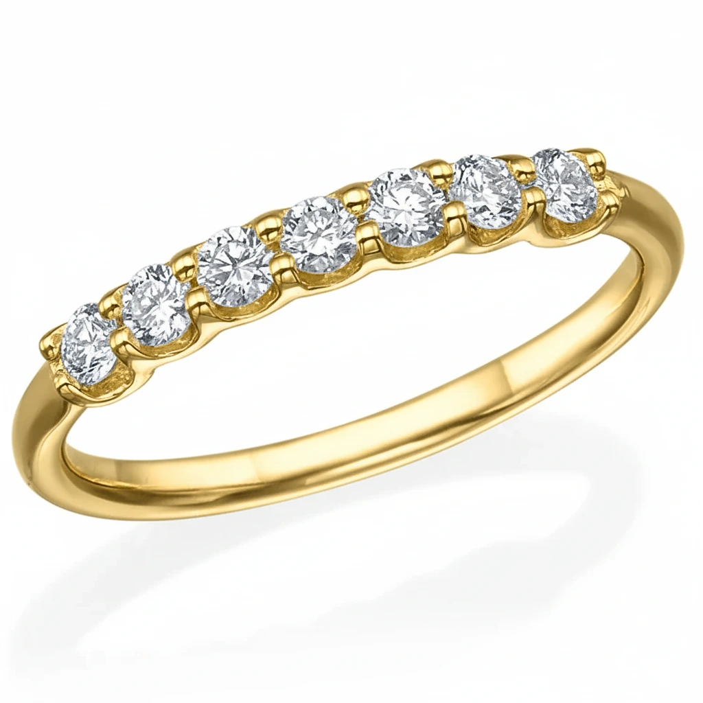 Timeless and luminous, the Aureline Grace Diamond Wedding Band is crafted in 14K yellow gold and showcases seven brilliant lab-grown diamonds totaling 0.51 carats. Each diamond is low-profile set, offering exceptional comfort for effortless everyday wear while maintaining a luxurious presence. With its refined sparkle, smooth silhouette, and graceful balance of brilliance and elegance, this band is the perfect choice for those who desire a wedding ring that radiates both sophistication and enduring beauty.