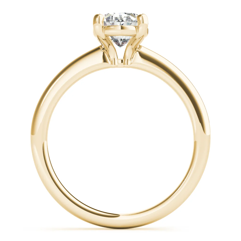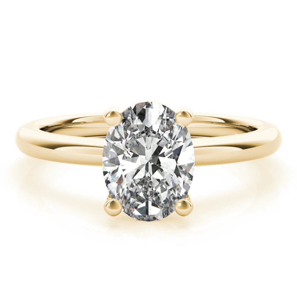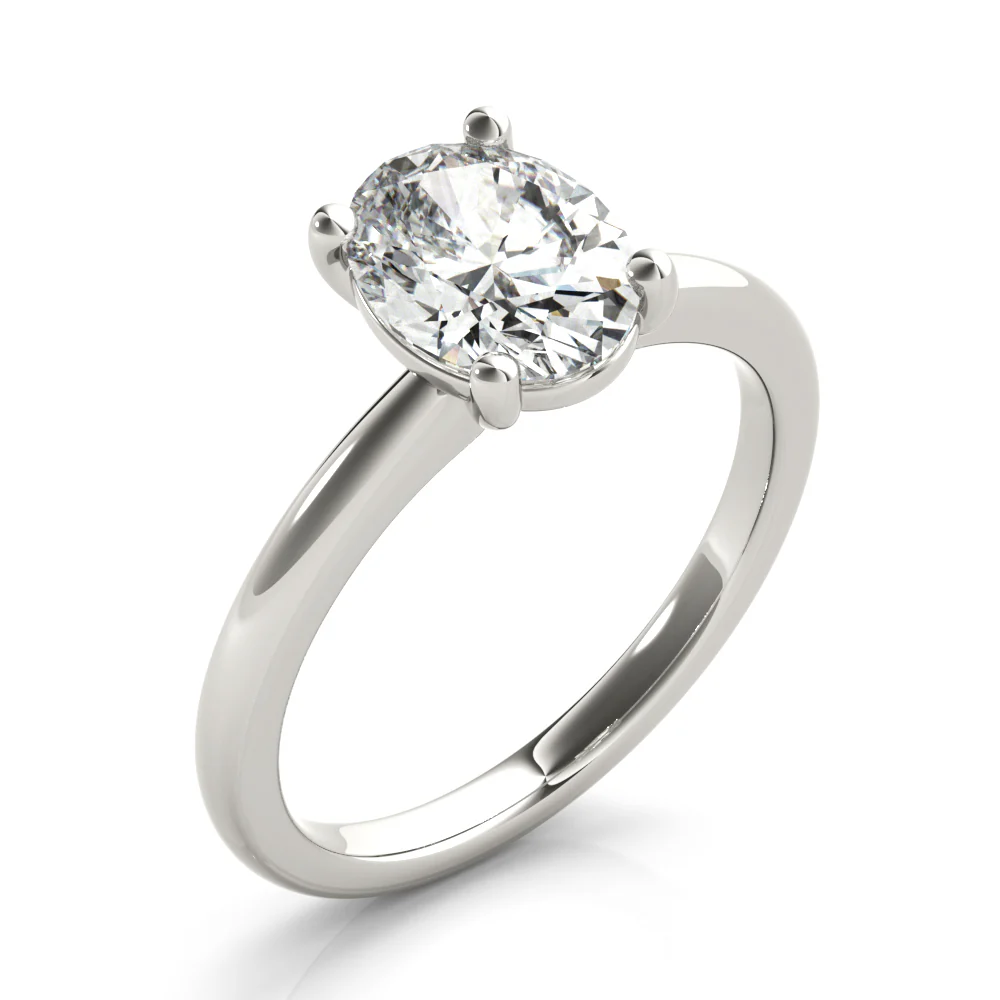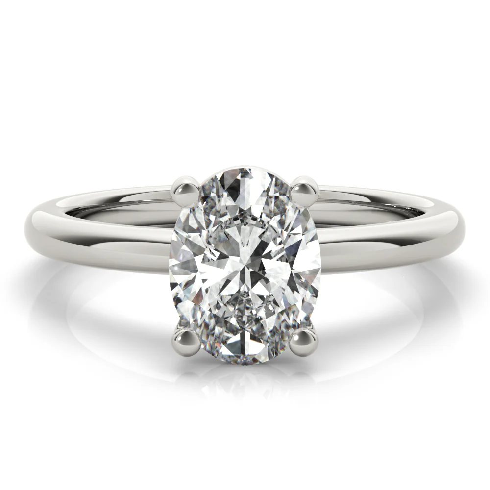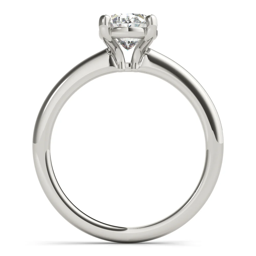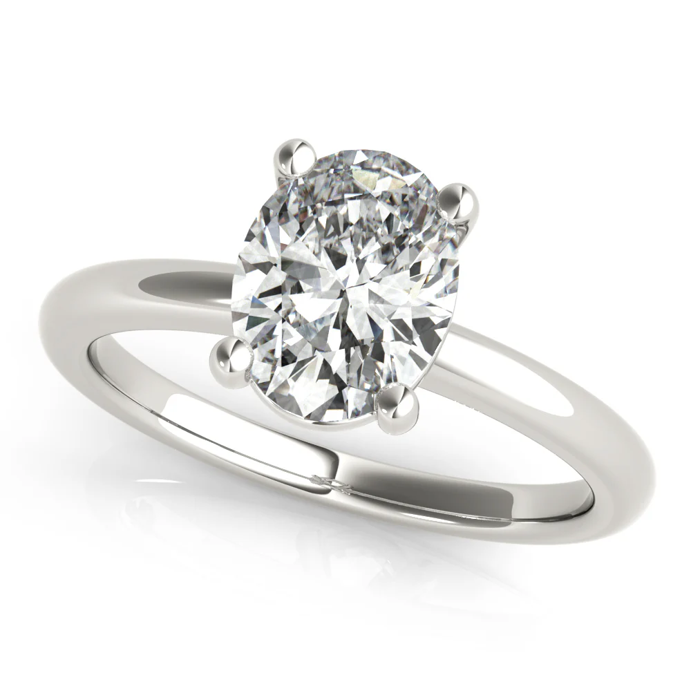The Aurora Oval Diamond Engagement Ring is an elegant design that highlights the brilliance of the oval-cut diamond. Its refined setting enhances sparkle and sophistication, making it a timeless symbol of love.