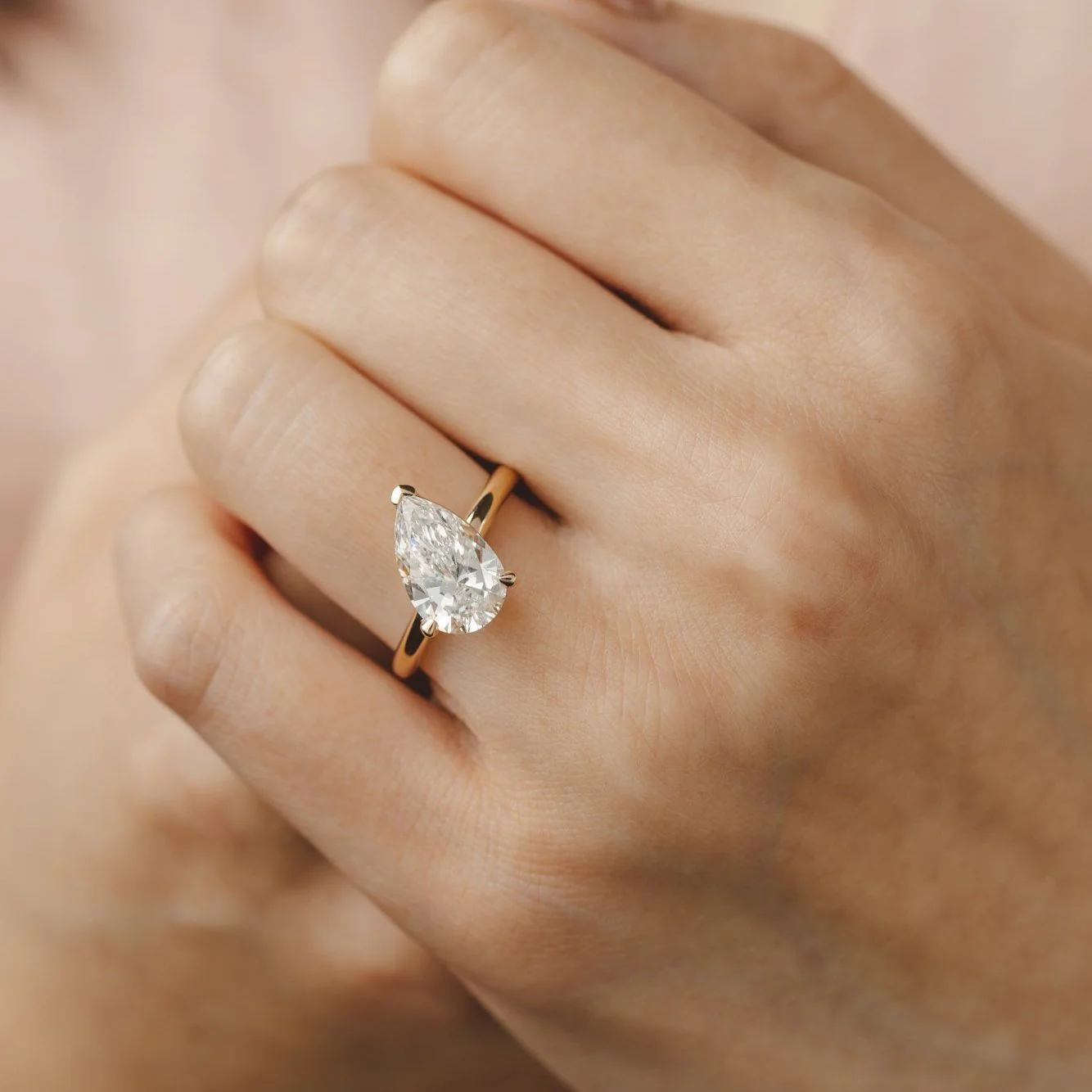 The rotem Tilted Pear Diamond Engagement Ring is a romantic design that highlights the unique beauty of a tilted pear-cut diamond. Its elegant setting ensures both style and security, creating a distinctive and timeless look.