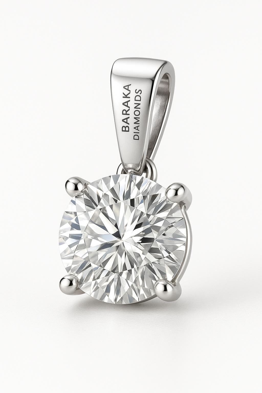 Timeless round-brilliant diamond solitaire pendant in a refined 4-prong setting, crafted in solid 18K yellow gold with a sleek engraved bail. Elegant, everyday luxury from Baraka Diamonds. Chain optional.