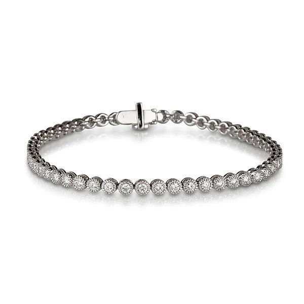 Timeless and refined, the Elara Classic Diamond Tennis Bracelet embodies understated luxury. Crafted in 14K white gold, this exquisite bracelet features 49 brilliant round diamonds totaling 0.95 carat, each meticulously set to create an unbroken line of radiant sparkle. With D-color, VS1-clarity stones and a secure clasp, it offers both durability and grace for everyday elegance or special occasions.