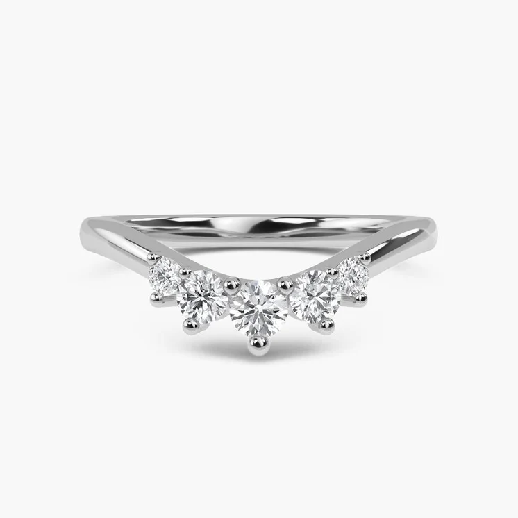Elegant and timeless, the Maravelle Halo Diamond Wedding Band features a captivating round center diamond embraced by four brilliant side diamonds, all expertly set in a refined halo-inspired design. Handcrafted in 14K white gold, this band blends classic sophistication with modern delicacy, offering soft radiance and graceful charm. Perfect for pairing with an engagement ring or wearing on its own, it’s an ideal choice for anyone who values refined craftsmanship and understated luxury.