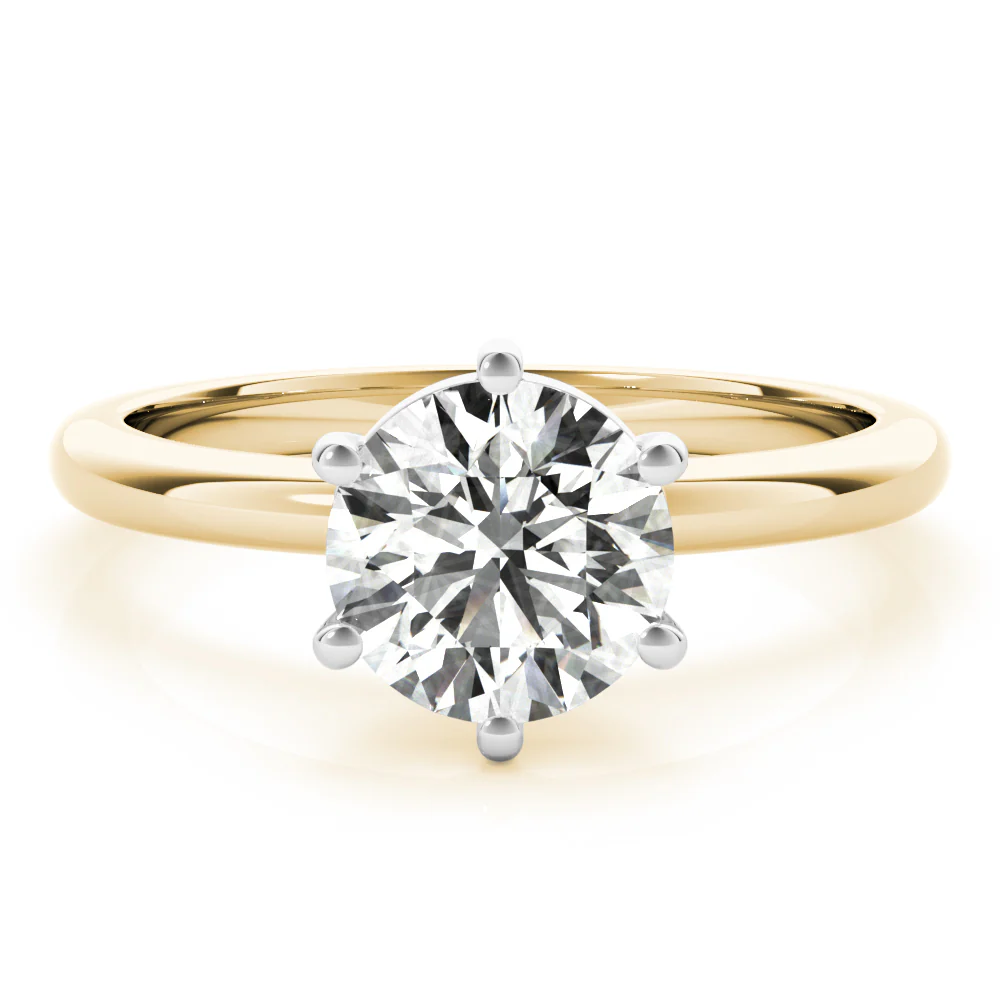 The Pure Grace 6-Prong Diamond Engagement Ring is a timeless design that highlights the brilliance of the center diamond. Its elegant six-prong setting enhances sparkle and beauty, making it a symbol of classic love.