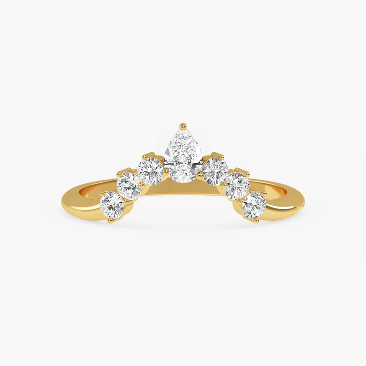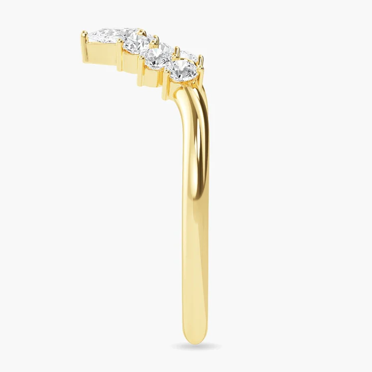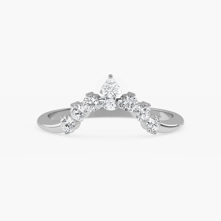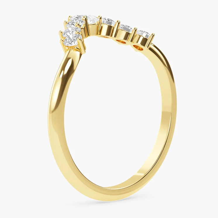 Ethereal and enchanting, the Selora Crescent Diamond Wedding Band captures the quiet beauty of moonlight in motion. Handcrafted in 14K white gold, this gracefully curved band features seven lab-grown brilliant-cut diamonds totaling 0.28 carats. Designed in a soft crescent shape, the diamonds meet elegantly at the ring’s tip—perfect for pairing with an engagement ring, stacking with other bands, or wearing alone as a minimalist statement. A delicate symbol of harmony, balance, and everlasting love.