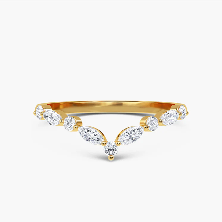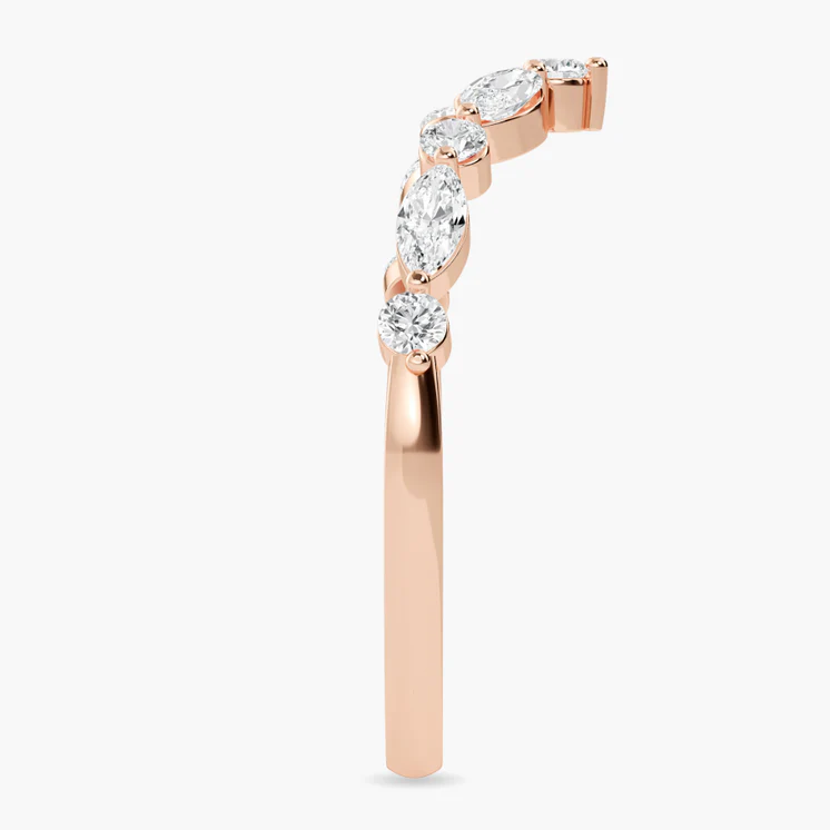 Graceful and captivating, the Althea Marquise & Round Diamond Wedding Band combines contemporary elegance with timeless charm. Handcrafted in 14K white gold, this band features a harmonious blend of nine marquise and round brilliant-cut lab-grown diamonds totaling 0.43 carats. The alternating diamond shapes create a soft, flowing line of brilliance that sparkles beautifully whether worn alone or paired with an engagement ring. Designed for the modern bride, Althea embodies sophistication and enduring love.