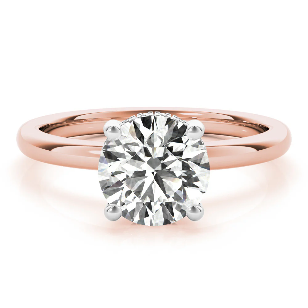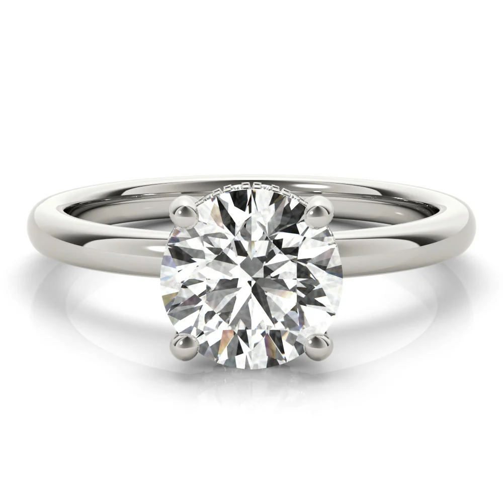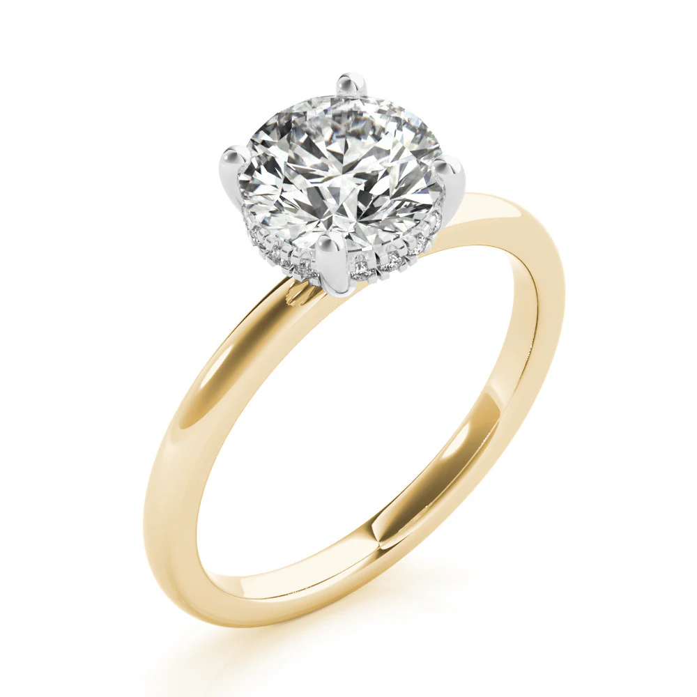 The Aurora Round Diamond Engagement Ring is a timeless classic that celebrates the brilliance of the round-cut diamond. Its refined setting enhances sparkle and elegance, making it a radiant symbol of everlasting love.
