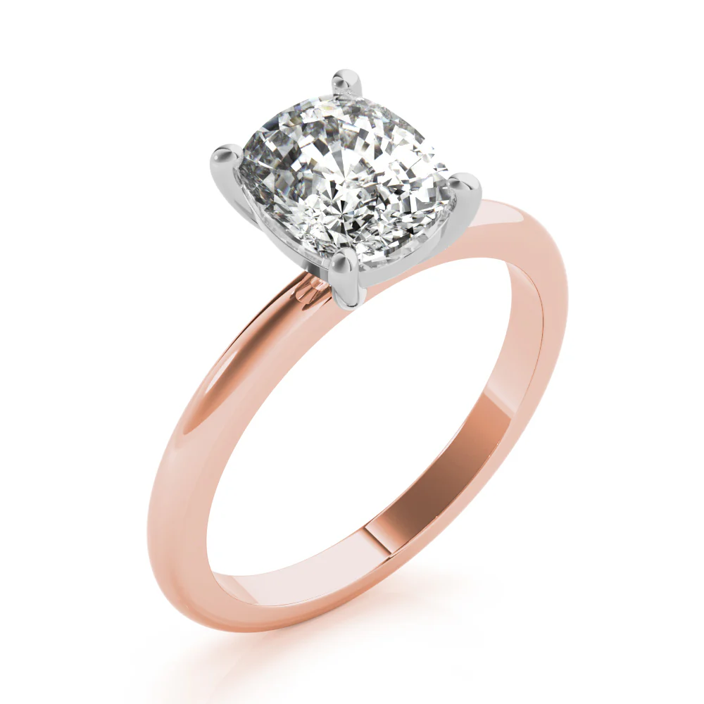 The Seraphina Cushion Diamond Engagement Ring is a graceful design that enhances the brilliance of the cushion-cut diamond. Its elegant setting balances timeless beauty with modern sophistication, making it a perfect symbol of love.